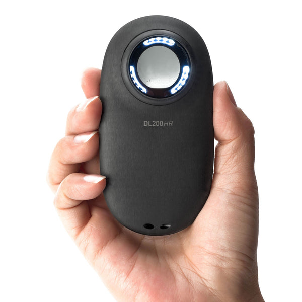 The all-new DermLite DL200 HR pocket dermatoscope succeeds & exceeds the successful DermLite DL2 Pro HR – in every way. In its beautifully ergonomic, easy-to-clean stainless steel body, DL200 adopts the optical system from the DL2, integrates an innovative, super-quick, retractable spacer mechanism with precise focusing, IceCap™ (infection control caps) compatibility, a much longer battery life, integrated MagnetiConnect™ smartphone connectivity, and, in this HR model, enjoy ultra-bright all-polarized illumination, all in one beautifully designed unit.