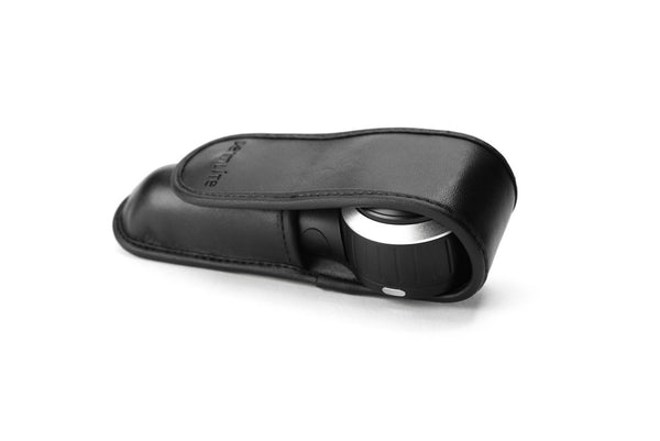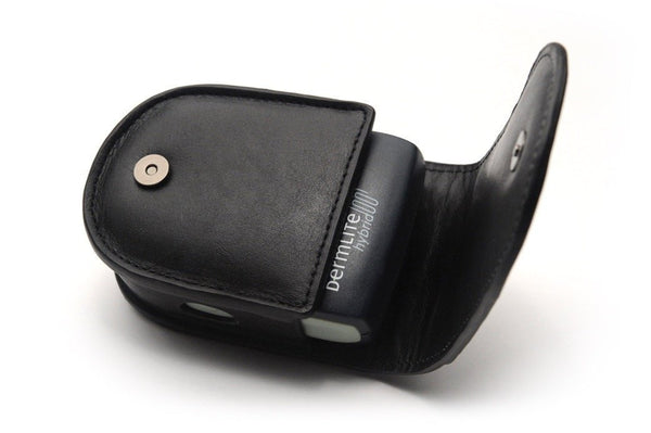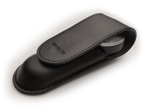 Genuine Nappa leather belt pouch designed to protect your DermLites – with (or without) with the silicon sleeve.